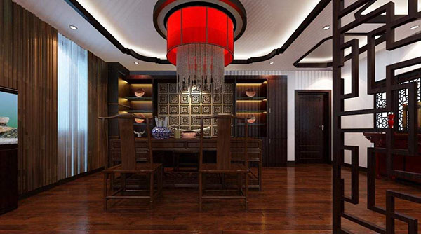 所以,在装修设计中式办公室的时候,要注意人们对色彩的传统认识观念相协调,从而赢得顾客的好感!建议以赤色红色为主!